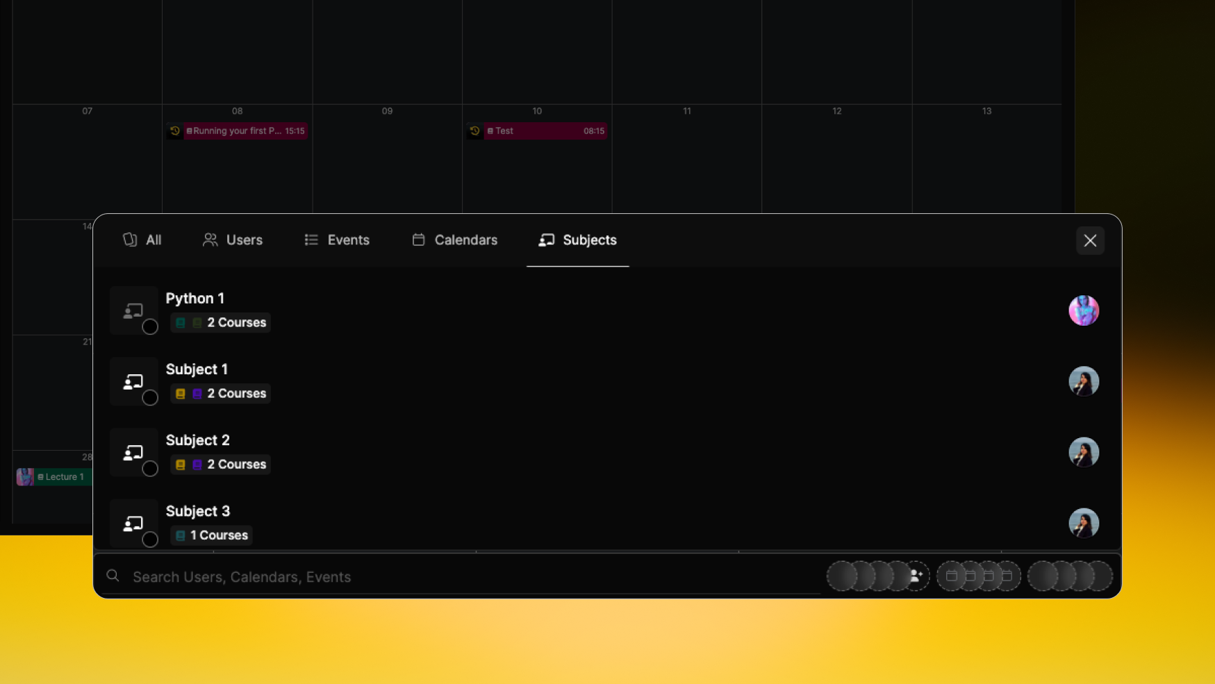 📌 Subject filter – Narrow down calendar events by their assigned subject